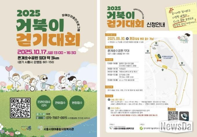 뉴스다 최광묵 기자 | 시흥시는 오는 10월 17일 오후 1시부터 은계호수공원 일대에서 장애인과 비장애인이 함께 걷고 소통하며 문화를 즐기는 ‘거북이 걷기대회’를 연다. 이번 행사는 시흥시대야종합사회복지관이 주관한다.