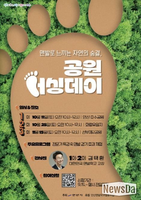 행사 참가비는 무료이며, 참여를 원하는 시민은 안산시청 누리집 ‘시정소식-새소식’란에 게시된 참여신청 QR코드로 접속해 사전 신청하면 된다. 자세한 사항은 안산시청 공원과로 전화 문의하면 안내받을 수 있다.