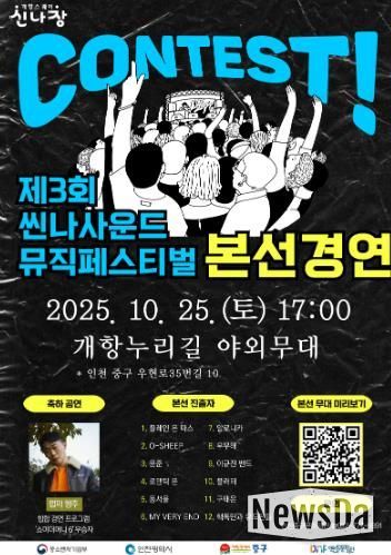 뉴스다 최광묵 기자 | (재)인천중구문화재단은 오는 10월 25일 오후 5시 인천 중구 개항누리길 야외무대에서 ‘제3회 씬나사운드 뮤직 페스티벌’ 본선 경연을 개최한다고 밝혔다.