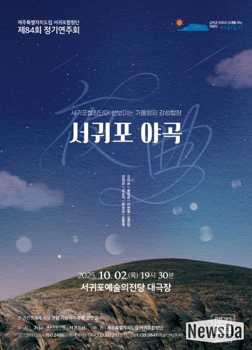 뉴스다 최광묵 기자 | 서귀포시는 오는 10월 2일 서귀포예술의전당 대극장에서 서귀포합창단의 제84회 정기연주회 '서귀포 야곡(夜曲)'을 개최한다.