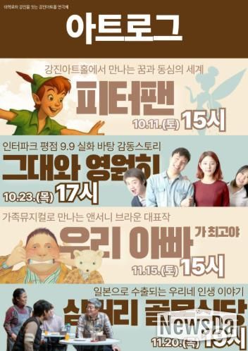 오는 10월 11일 ‘피터팬’을 시작으로 이어지는 ‘아트로그 가을 시즌’ 관람 신청은 강진군청 누리집 가입-소통과 참여-공연/행사 게시판에서 댓글로 참여할 수 있다.
