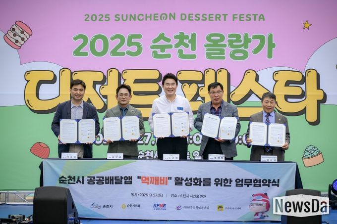 뉴스다 최광묵 기자 | 순천시는 지난 27일 시민로 일원에서 열린 순천 올랑가 디저트 페스타 행사에서 공공배달앱 ‘먹깨비’ 활성화를 위한 업무협약식을 개최했다.