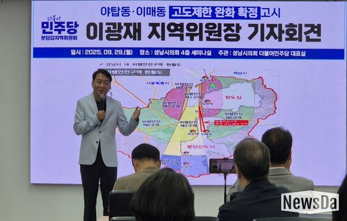 뉴스다 최광묵 기자 | 더불어민주당 분당갑 이광재 지역위원장은 29일 기자회견을 통해 “주민들의 오랜 숙원인 서울공항 주변 고도제한 완화가 결실을 맺게 된 것은 주민들의 인내와 연대, 그리고 함께해 온 노력 덕분”이라고 밝혔다.