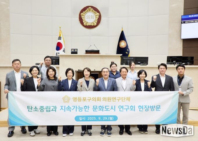 뉴스다 최광묵 기자 | 용인특례시의회 의원연구단체 탄소중립연구소Ⅲ는 29일 의장실에서 영등포구의회 의원연구단체 ‘탄소중립과 지속가능한 문화도시 연구회’와 간담회를 열고 탄소중립 관련 정책연구 성과와 우수사례를 공유했다.