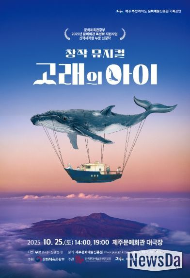 뉴스다 최광묵 기자 | 제주특별자치도 문화예술진흥원이 한국문화예술회관연합회 주관 ‘2025년 문예회관 특성화 지원 사업 신작제작형’ 공모에 선정된 창작뮤지컬 ‘고래의 아이’를 오는 10월 25일 문예회관 대극장에서 선보인다.