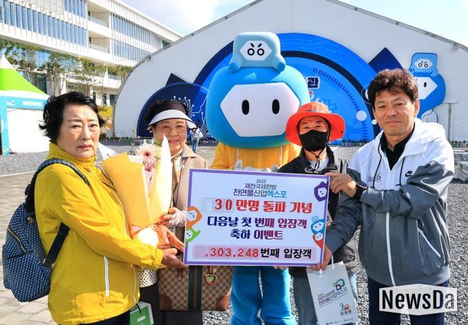 뉴스다 최광묵 기자 | 2025제천국제한방천연물산업엑스포 조직위원회는 9월 29일 오전, 누적 관람객 30만 명 돌파를 기념해 특별 이벤트를 진행했다.