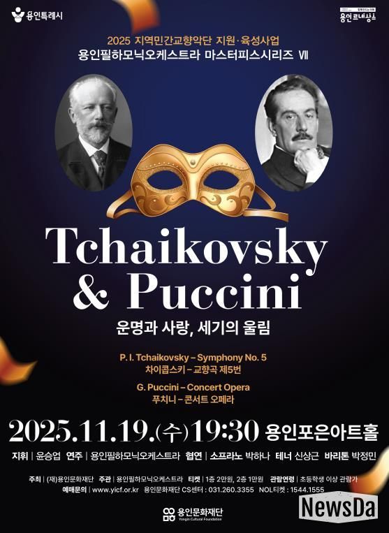 뉴스다 최광묵 기자 | 용인문화재단은 오는 11월 19일 오후 7시 30분, 용인포은아트홀에서 용인필하모닉오케스트라(지휘 윤승업) ‘Tchaikovsky · Puccini '운명과 사랑, 세기의 울림'’ 공연을 개최한다고 밝혔다.