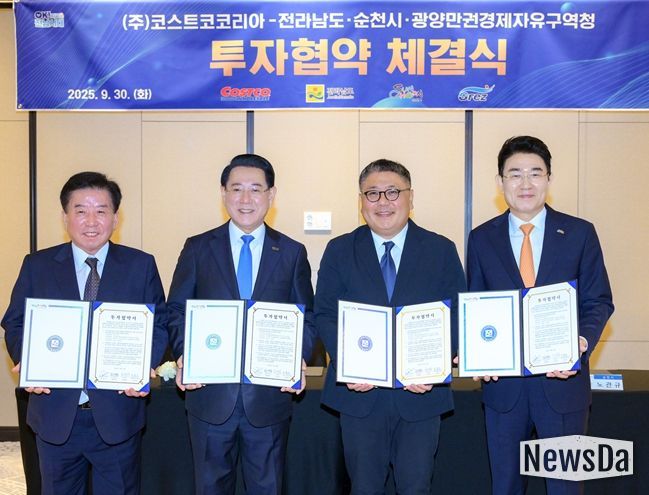 순천시는 30일 서울 여의도 페어몬트 앰배서더 호텔에서 ㈜코스트코코리아(이하 “코스트코”), 전라남도, 광양만권경제자유구역청과 순천 입점을 위한 투자협약(MOU)을 체결했다.