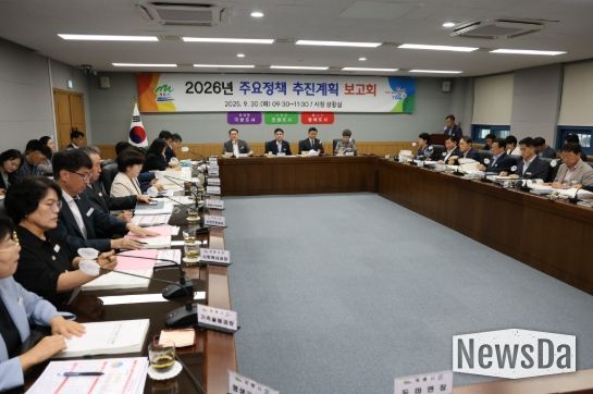 보고회 순서는 2026년도 정책 여건과 재정 전망, 시정 운영 방향, 핵심 정책과제에 대한 전략기획감사실장의 총괄 브리핑 후 부서별 신규 시책과 주요 정책에 대한 업무 보고가 진행됐다.