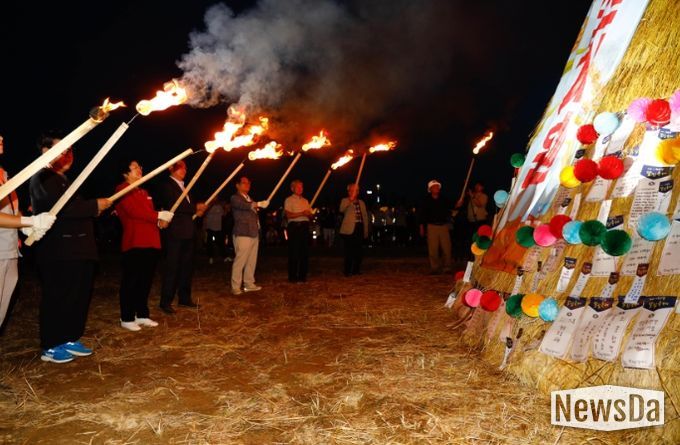 축제의 절정은 달집태우기였다. 사물놀이 공연과 폭죽으로 분위기를 띄운 뒤, 관람객들이 함께 소망을 적어 달집에 태우며 풍년과 평안을 기원했다. 모두가 한마음으로 참여한 순간, 축제는 지역 공동체의 화합을 상징하며 막을 내렸다.