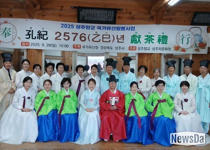 뉴스다 최광묵 기자 | 대설위 상주향교에서는 2025년 9월 28일 명륜당과 대성전에서 공부자(孔夫子) 탄강(誕降) 2576년을 맞아 50여 명의 상주시 관내 여성회원들이 참여한 가운데 ‘공부자 탄강 경축 헌다례’를 성대하게 올렸다.