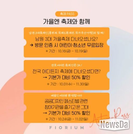 뉴스다 최광묵 기자 | 남원시 미디어아트 전시관 피오리움(Fiorium)이 가을철을 맞아 다양한 무료·할인 혜택을 담은 ‘어텀패스(Autumn Pass)’를 선보인다. 가을시즌 주요 행사와 연계해 시민과 관광객 모두가 즐길 수 있도록 마련됐다.