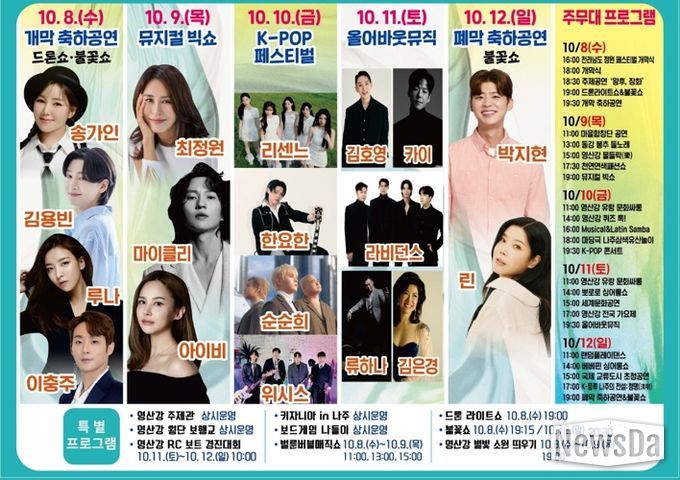 특히 개막식부터 폐막식까지 5일 동안 대한민국 최정상급 뮤지컬 배우, 트로트 스타, K-POP 아티스트 등이 대거 출연해 축제의 품격과 화려함을 더한다.