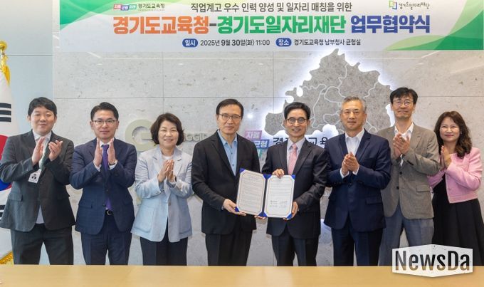 뉴스다 최광묵 기자 | 경기도교육청이 30일 남부청사에서 경기도일자리재단과 도내 직업계고 학생의 성공적 사회 진출 및 일자리 창출을 위한 업무 협약을 체결했다.