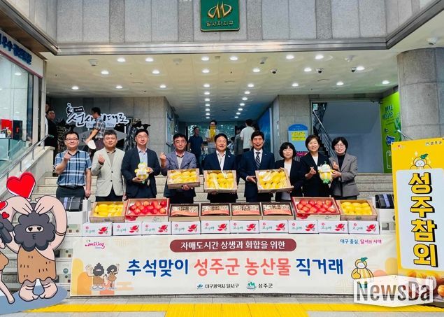 뉴스다 최광묵 기자 | 성주군은 9월 30일 화요일, 다양한 판로 개척을 통한 지역 농가 소득증대를 위하여 자매결연기관인 달서구청에서 농특산물 판매행사를 개최했다.