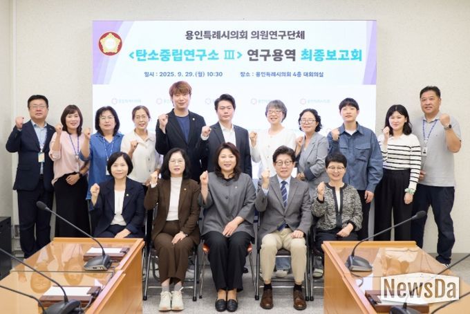 뉴스다 최광묵 기자 | 용인특례시의회 의원연구단체 ‘탄소중립연구소Ⅲ’은 29일 시의회 대회의실에서 ‘용인시 기후 불평등 해소 정책대안’ 연구용역 최종보고회를 개최했다.