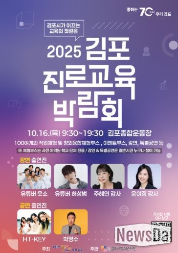 시는 오는 16일 오전 9시 30분부터 오후 7시 30분까지 김포종합운동장에서 ‘2025 김포 진로교육 박람회’를 개최한다고 밝혔다. ‘김포시가 이끄는 교육의 첫걸음’을 주제로 열리는 이번 박람회는 인공지능, 로봇공학, 스마트 모빌리티 등 미래산업분야를 포함해 100여 개의 부스를 마련했다. 다양한 진로 탐색부터 진로진학지도 방향 제시까지 아우르는 것이 특징이다.
