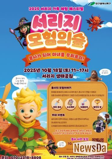 뉴스다 최광묵 기자 | 대구 북구청은 오는 10월 18일 동호동 서리지 생태공원 일원에서 '2025 서리지 가족 체험 페스티벌 – 서리지, 모험의 숲'을 개최한다고 밝혔다.