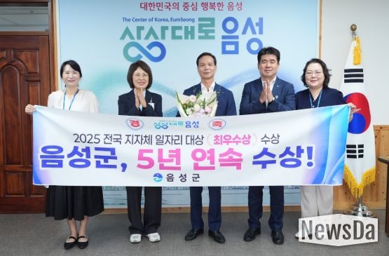 뉴스다 최광묵 기자 | 음성군은 30일 고용노동부가 주관한 “2025 전국 지방자치단체 일자리대상” 일자리 목표 공시제 부문에서 ‘최우수상’을 수상하며, 5년 연속 수상의 영예를 안았다.