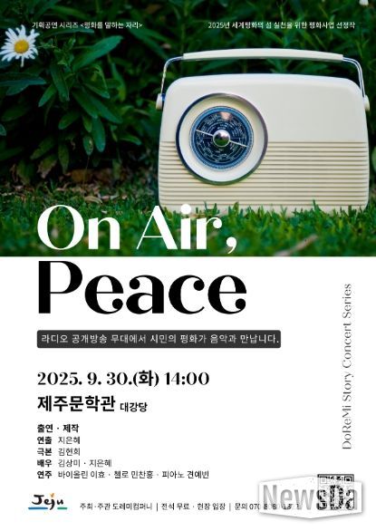 뉴스다 최광묵 기자 | 라디오 공개방송 형식으로 꾸며지는 음악극 ‘스토리 콘서트 'On Air, Peace'’가 30일 오후 2시 제주문학관 대강당에서 막을 올린다.