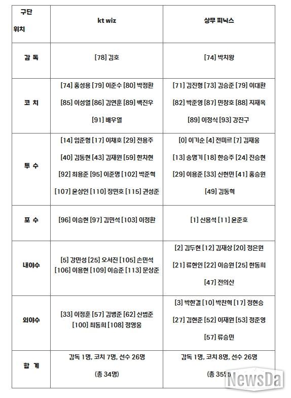 뉴스다 류대현 기자 | 10월 1일(수) 오후 7시 고척스카이돔에서 개최되는 2025 KBO 퓨처스리그 챔피언결정전에서 맞붙는 KT와 상무의 출장자 명단이 발표됐다.