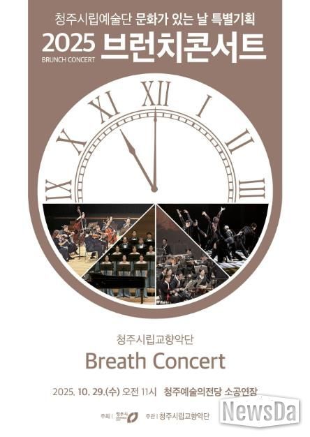 뉴스다 최광묵 기자 | 청주시립교향악단은 오는 29일 오전 11시 청주예술의전당 소공연장에서 ‘브런치콘서트–Breath Concert’를 공연한다.