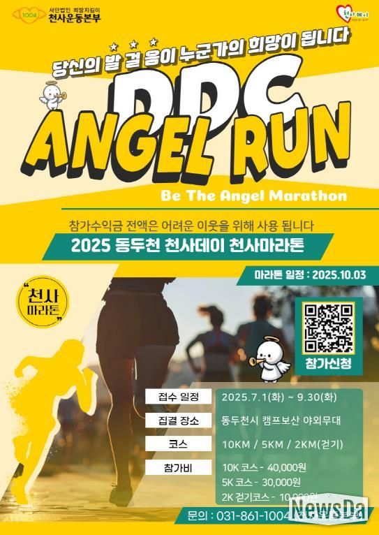 뉴스다 최광묵 기자 | 동두천시는 오는 10월 3일 오전 9시 한미우호의 광장과 신천변 일원, 상패수변공원에서 '2025 천사데이 제23주년 기념행사'를 개최한다고 밝혔다. 이번 행사는 (사)희망나눔 천사운동본부가 주관하고 동두천시가 후원한다.