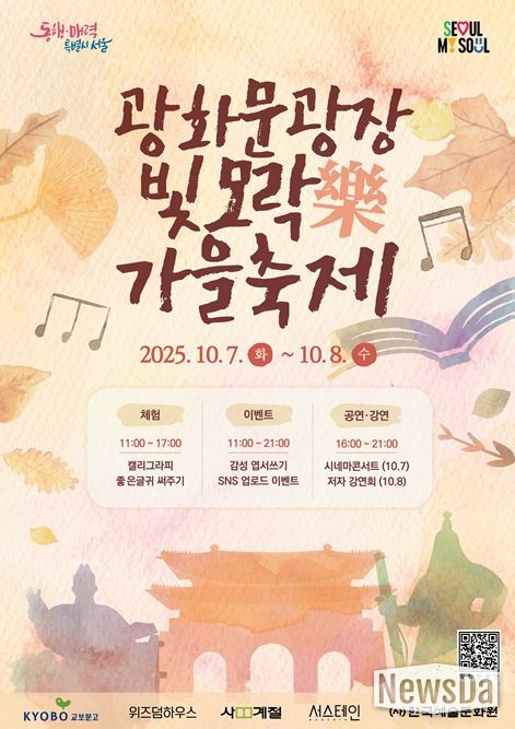 서울시는 10월 7일~8일 이틀간 ‘2025 광화문광장 빛모락 가을축제’를 개최한다고 밝혔다.