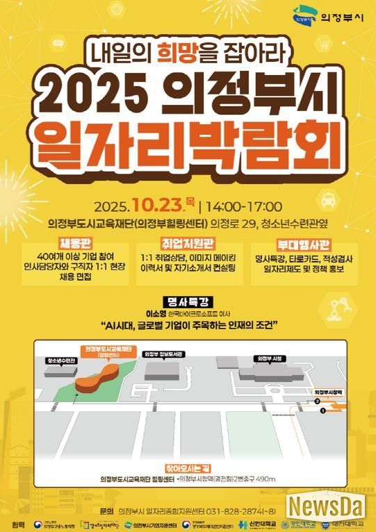 뉴스다 최광묵 기자 | 의정부시는 10월 23일 오후 2시 의정부도시교육재단 힐링센터(의정로 29, 청소년수련관 옆)에서 ‘2025 의정부시 일자리 박람회’를 개최한다.