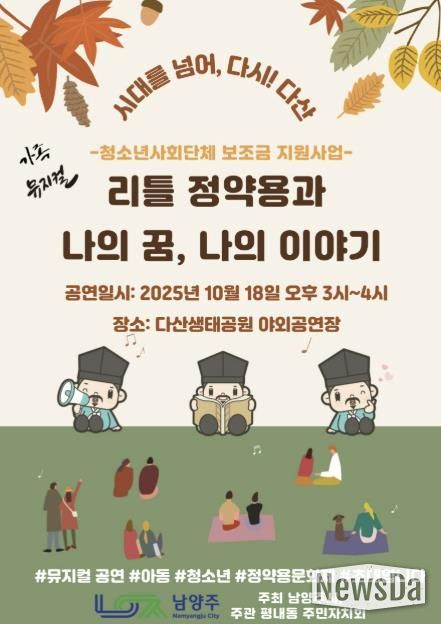 뉴스다 최광묵 기자 | 남양주시는 오는 10월 18일 조안면 다산생태공원에서 아동·청소년 대상 가족뮤지컬인 ‘리틀 정약용’을 선보인다.