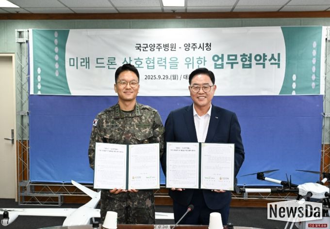 뉴스다 최광묵 기자 | 양주시가 지난 29일 국군양주병원과 손잡고 ‘드론산업 발전 및 활용을 위한 업무협약’을 체결했다.