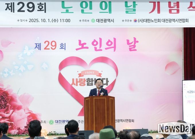 뉴스다 최광묵 기자 | 대전시는 10월 1일 대전시 노인복지관에서 ‘제29회 노인의 날 기념행사’를 열고 평생 가족과 지역사회를 위해 헌신해 온 어르신들에게 존경과 감사를 전했다.