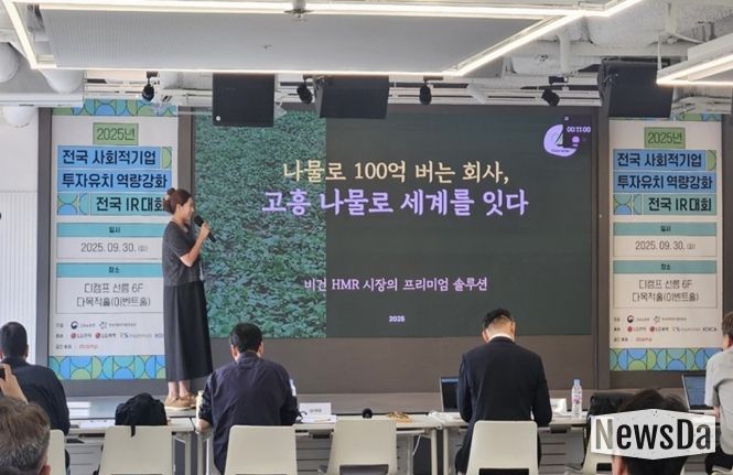 뉴스다 최광묵 기자 | 고용노동부와 한국사회적기업진흥원은 9월 30일 디캠프 선릉 다목적홀에서 ‘2025년 사회적기업 투자유치 대회’를 성황리에 개최했다고 밝혔다.