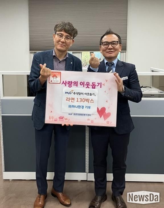 강영도 금촌2동장은 “명절마다 변함없는 나눔을 실천해 주시는 하나환경에 깊이 감사드린다”라며 “기탁된 물품은 도움이 필요한 가정에 신속하게 전달하겠다”라고 말했다.