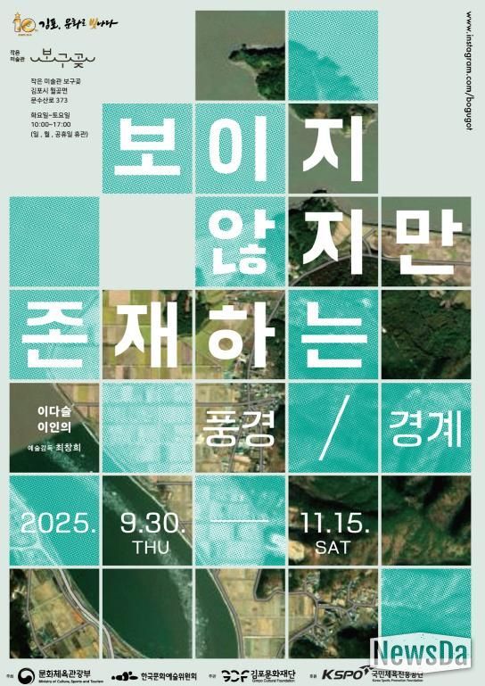 뉴스다 최광묵 기자 | (재)김포문화재단은 작은미술관 보구곶에서 평화와 생태를 주제로 한 기획전시 '보이지 않지만 존재하는 – 풍경/경계'를 9월 30일부터 11월 15일까지 개최한다고 밝혔다.