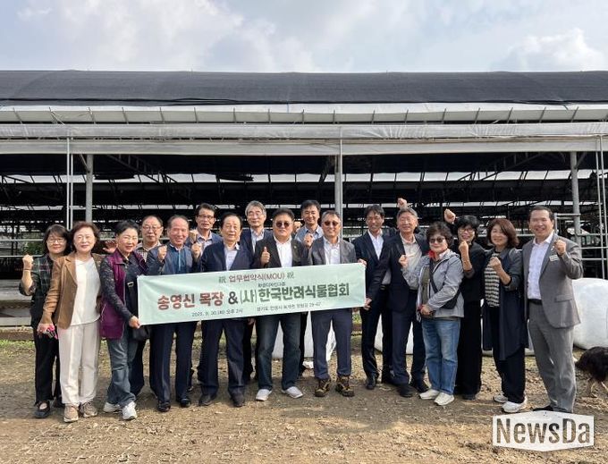 뉴스다 최광묵 기자 | 경기도의회 농정해양위원회 이오수 의원(국민의힘, 수원9)은 30일 안성시 송영신 목장에서 진행된 '송영신 목장–(사)한국반려식물협회 업무협약(MOU) 체결식'에 참석해 피트모스 축분퇴비를 활용한 반려식물 재배 및 치유농업 실증을 위한 민관 협력 기반 마련에 나섰다.