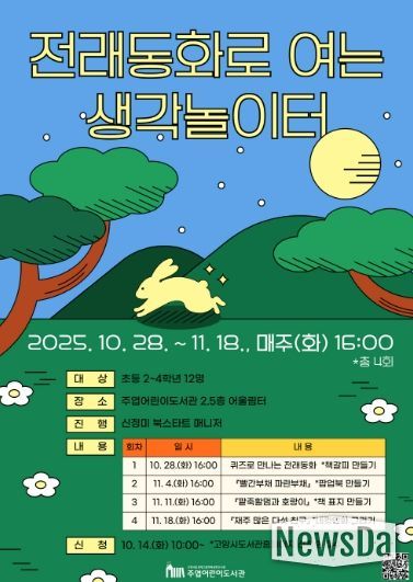 주엽어린이도서관 관계자는 “전래동화를 통해 어린이들이 다양한 가치와 지혜를 배우고, 스스로 생각을 확장하는 기회를 갖길 바란다”라고 전했다.
