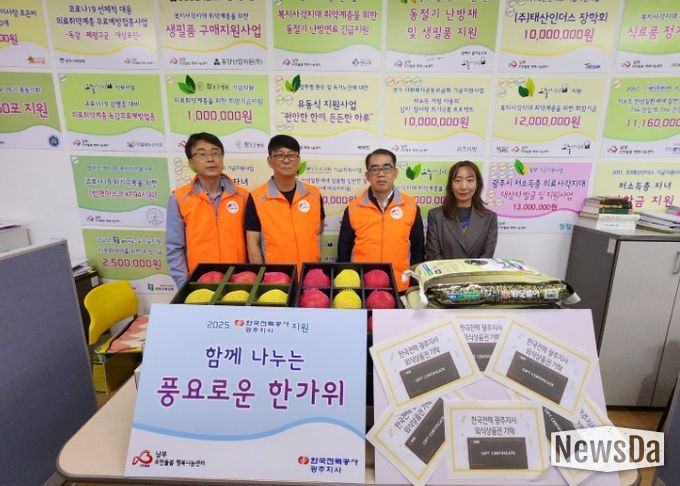 뉴스다 최광묵 기자 | 한국전력공사 광주지사는 1일 광주시 남부 무한돌봄 행복나눔센터를 방문해 지역 내 취약계층을 위한 120만 원 상당의 물품(식료품, 외식상품권 등)을 기탁했다.
