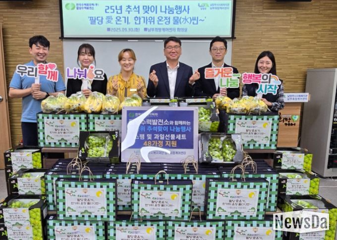 뉴스다 최광묵 기자 | 남양주시는 9월 30일 남부희망케어센터가 한국수력원자력(주)팔당수력발전소의 후원을 받아 ‘팔당愛 온기, 한가위 온정 물(水)씬~’이라는 이름으로 2025년 추석 명절맞이 나눔행사를 진행했다고 밝혔다.
