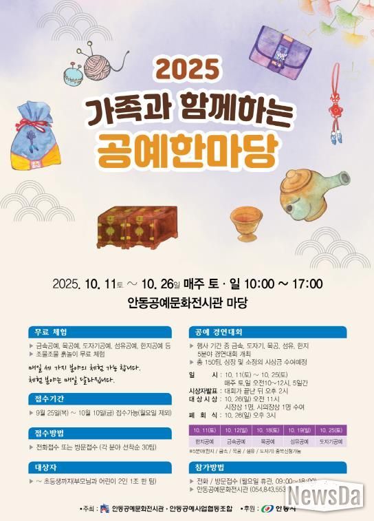 뉴스다 최광묵 기자 | 안동공예문화전시관(안동공예사업협동조합)이 주최하고 안동시가 후원하는 ‘2025 공예한마당’ 행사준비가 한창이다.