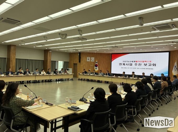 뉴스다 최광묵 기자 | 논산세계딸기산업엑스포 조직위원회는 1일 논산시청 회의실에서 ‘2027 논산세계딸기산업엑스포 연계사업 추진 보고회’를 열고, 성공적 개최를 위한 부서별 추진 방향과 전략 과제를 공유했다.