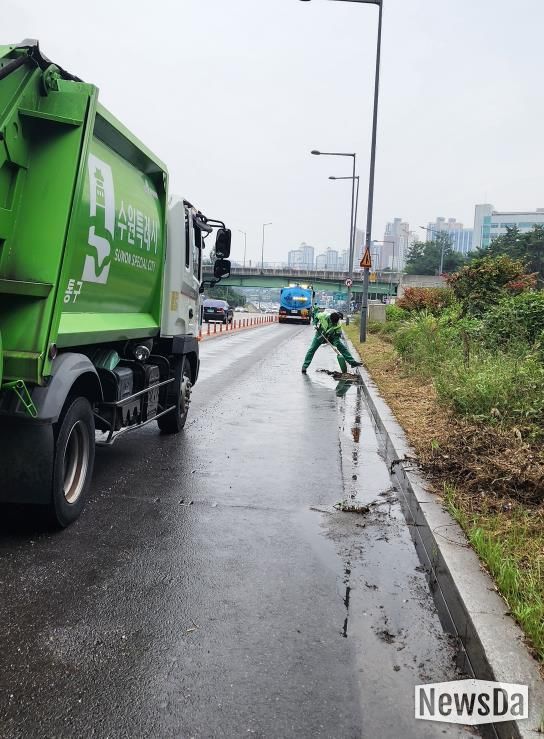 뉴스다 최광묵 기자 | 수원특례시 영통구는 '대한민국 새단장' 캠페인의 일환으로 민족 최대의 명절 추석을 맞아 고향을 찾는 귀성객들에게 쾌적하고 안전한 도로 환경을 제공하고자 영동고속도로 동수원나들목 진출입로 집중 환경정비를 실시했다.