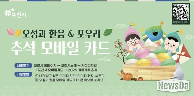 뉴스다 최광묵 기자 | 포천시는 지난 1일 민족 최대 명절 추석을 맞아 시민들이 감사와 따뜻한 마음을 손쉽게 전할 수 있도록 ‘추석 모바일 카드’를 무료 배포했다.