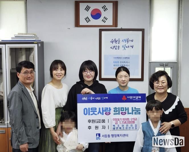뉴스다 최광묵 기자 | 수원시 권선구 서둔동에 위치한 백조어린이집 및 예쁜백조어린이집은 지난 2일, 지역사회 내 어려운 이웃과 소외계층을 위해 어린이집 체험활동 수익금 1,154,000원을 서둔동행정복지센터에 기부했다.