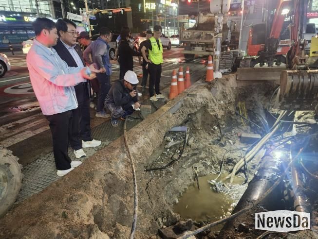 뉴스다 최광묵 기자 | 조성대 남양주시의회 의장이 지난 1일 저녁 평내동 일대 노후 상수도관 교체 현장을 방문해 단수로 인한 주민 불편이 최소화될 수 있도록 신속한 복구를 주문했다.