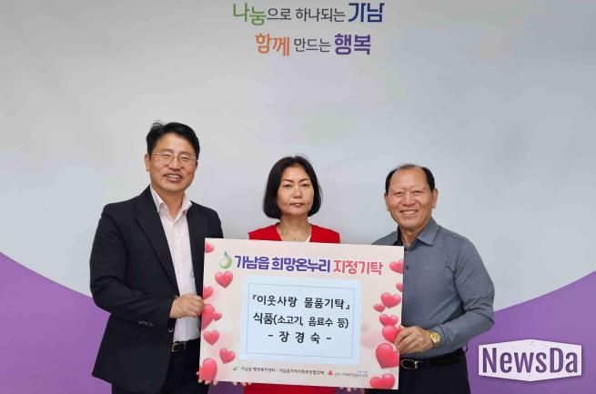 뉴스다 최광묵 기자 | 지난 9월 30일 장경숙(가남읍 주민)씨가 가남읍 내 어려운 이웃들을 위해 소고기와 음료수 등 식품을 가남읍 행정복지센터에 기탁했다.
