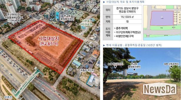 뉴스다 최광묵 기자 | 성남시는 판교동 578번지 옛 차량등록사업소 부지의 개발 방향을 ‘기업 유치 및 복합문화체육시설 조성’으로 확정하고, 내년부터 사업을 본격 추진한다고 2일 밝혔다. 이는 16년간 방치된 부지를 지역 발전과 시민 편익 증진의 거점으로 탈바꿈시키려는 시의 강력한 의지가 반영된 결과다.