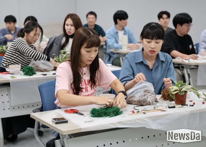 외부 강사 초빙해 식물을 이해하고, 임직원들이 직접 꾸미며 ‘나만의 작은 정원’을 완성하는 과정 속에서 참여자들은 긴장 완화·정서적 안정·몰입에 따른 스트레스 해소 효과와 성취감을 느낄 수 있었다.