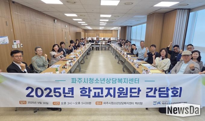 뉴스다 최광묵 기자 | (재)파주시청소년재단 파주시청소년상담복지센터(센터장 장문희)는 9월 30일 오후 3시, 센터 내 백리향에서 관내 초·중·고 33개교 교장을 대상으로 '2025년 청소년안전망 학교지원단 간담회'를 개최했다.