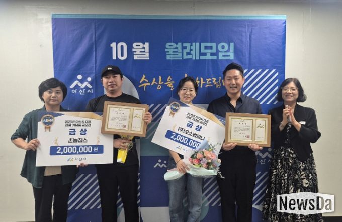 뉴스다 최광묵 기자 | 아산시는 2일 시청 시민홀에서 열린 10월 월례모임에서 2025 아산시 대표관광기념품 공모전 금상 수상작 2점을 시상했다고 밝혔다.